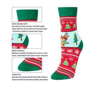 QUALITY MATERIAL: Made from a premium blend of 80% cotton, 15% polyamide, and 5% elastane, these festive socks offer children unparalleled softness, comfort, and breathability.