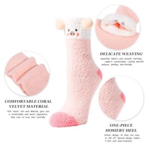 Fuzzy Socks for Women Girls Colorful Indoors Animal Slipper Socks, Functional Slipper Socks, Cozy Gifts for Women