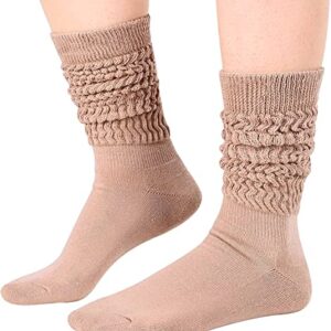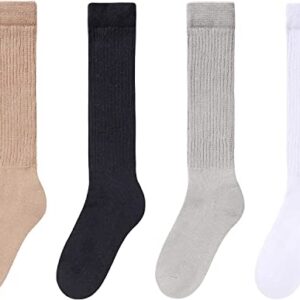 One size fits most. Our women’s slouchy socks are designed to fit for women’ s shoe size 5-10. 4 pairs of scrunchie socks comes in a plastic zippered bag.
